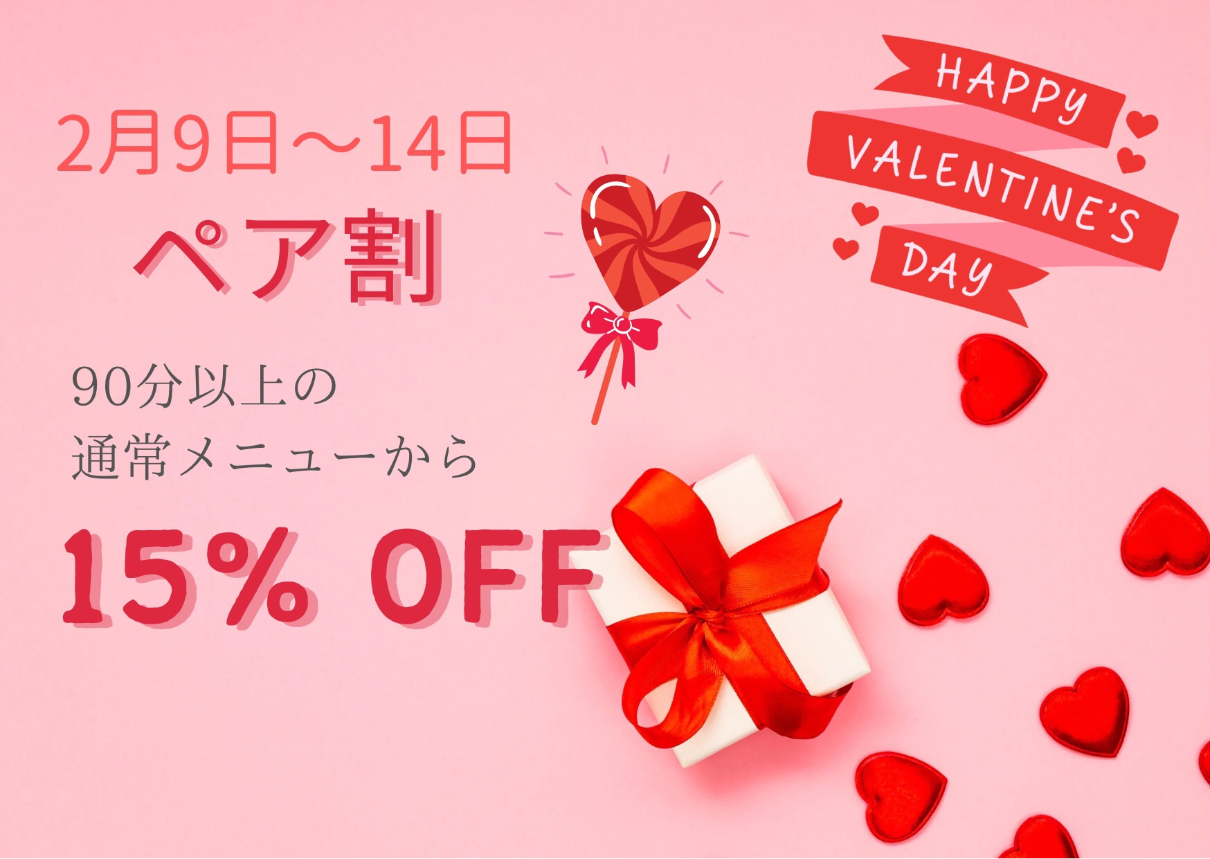90分以上の通常メニューが15%OFF!!
